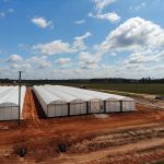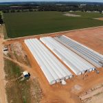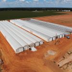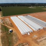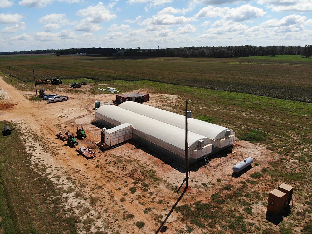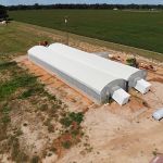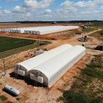 (1) 38’x72′ CS3 with a partition wall, (2) roof vents, evaporative cooling systems, and a slope-flat-slope shade system